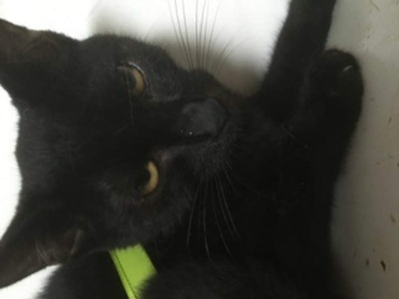 | 特徴(性格など) | 黒猫、てん丸くん。尾尻長く真っ直ぐです。かなり人馴れしてます。 元気いっぱい、他の子とプロレス、追っかけ大好き。 トライアル期間あります。 |