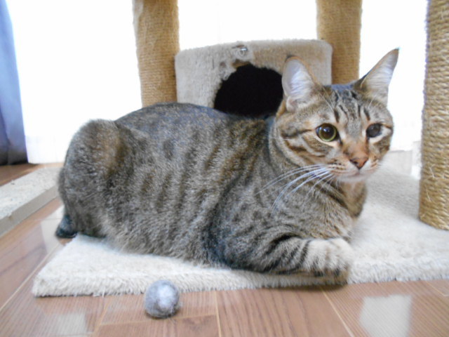 | 特徴(性格など) | ☆☆☆ご希望の方は、以下のアンケートフォームにご記入の上、送信してください☆☆☆ ねこ親希望アンケート→ http://chibawan.net/contactform_cat 【猫No】2394 【愛称】ハイジ 【性別】オス 【年齢】推定4歳1ヶ月(2021/5/12現在) 【毛色】キジトラ 【体重】5.5kg(2021/5/12現在) 【状態】ノミダニ駆除済・トイレ躾済・ワクチン接種済(2020年9月26日)・血液検査(エイズ・白血病共に陰性)・不妊手術済・マイクロチップ装着済 【保護場所】船橋市 【日記】nontonatu.cocolog-nifty.com/blog/「のんandなつ」 【経緯】千葉愛護センターから引き出し 【性格】とても元気で食欲旺盛、食べることが大~好きなので大きく成長しました。 おっとりしていて、慎重派でのんびり屋さん。 寂しがり屋で甘えん坊ですぐ人の膝に乗ってきますし、ひとりでは安心できないらしく必ず誰かのそばで寝ています。 シッポは短く根元から曲がっていて先っちょがクルンとしたカギしっぽです。 頭が良くてドアノブに手を掛け、まるで人間のようにごく普通にドアを開けて出入りしています。 コロコロ転がるおもちゃやお気に入りのじゃらしを上手にくわえて持って来て、飽きるまで『投げて~!あそんで~!』と見つめる姿は、いじらしくてとても可愛いいです。 臆病なところがあるので、慣れるまでは時間が必要かもしれません。 【補足事項】センターに収容された時点(推定2週齢)でのねこ風邪が原因で左目の視力はほぼ無いと思われますが、日常生活には全く支障ありません。人の食べ物にとても興味を示し、キッチンやテーブルに登り食べてしまうので十分な注意が必要です。 とても寂しがり屋なので、できれば先住さんが居るか兄弟一緒に迎えていただけるご家庭を希望します。 【その他】愛情いっぱいの終生飼養、ネコにあった生活スタイル、完全室内飼育、定期的なワクチン接種等の健康管理をお約束いただける関東近県のご家族(恐れ入りますが預かり宅から1時間程度でお届けできるご家庭を優先させていただきます)で、アンケートに快くお答えいただける方からのお問い合わせをお待ちしております。 |