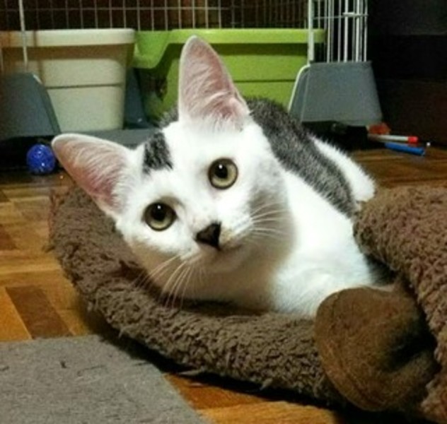 | 特徴(性格など) | 前髪がキュートな「お花ちゃん」 (仮の名前です) 別掲載 「困り顔男子ちゃーぼう」君の妹です ちょっとだけ おっとりなビビりちゃん😄 母猫が隠して育てていたので、 ちょっとした音に驚いたり まだ慎重なところがありますが ご飯の時には「ゴハンちょうだ〜い✨」とやって来ます♪ そっと膝に乗せて撫でると可愛いゴロゴロを聴かせてくれています😊 真っ直ぐで長めのしっぽのキジシロちゃんで キュートな前髪が個性的(^^) |
