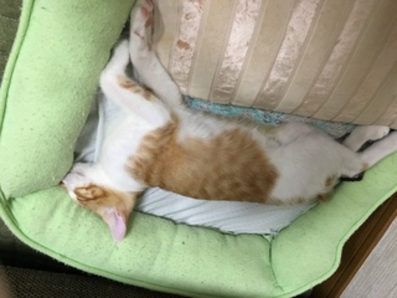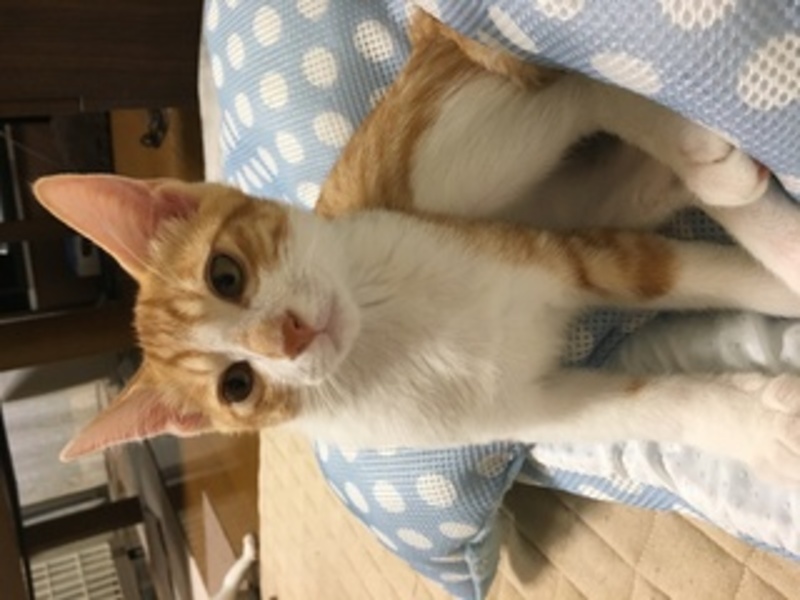 | 特徴(性格など) | 生後1ヶ月で保護した時、薄くエイズ陽性反応が出ましたが、母猫の母乳による抗体によるものと思い、9月1日に再検査したところ、陰性になっていました。 免疫力の高い超健康優良児だと思います。とっても可愛い茶白の男の子です^_^ まだまだ子猫。遊びたくて走りたくて仕方ないって感じの可愛い男の子です。 そんなに鳴かないし、穏やかな性格です。 ビビりさんなので慣れたら甘えん坊になると思います。 |