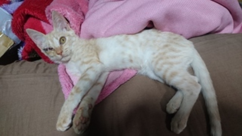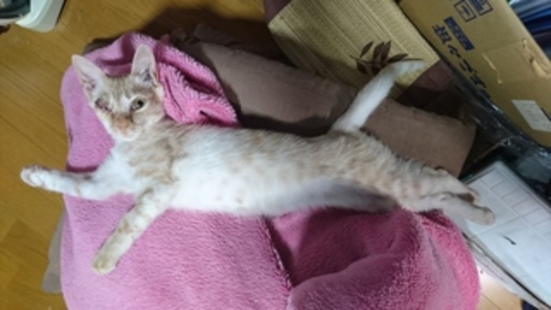 | 里親募集する理由 | 沖縄県の南大東島で右の眼球がただれた状態でさ迷っていました親猫も見当たらず人馴れしているため捨てられた子猫と思われます 右目からの感染症で死亡する可能性が高い状況でした。 南大東島は離島で猫が増えてしまうのは死活問題なため子猫を保護する機関はなく、個人で助けるしかありませんでした島の方にもほうっておくべきといわれましたが どうしても見捨てることができませんでした。 東京に連れて帰り眼球摘出手術をして、いまは右目が無いことなどものともせず元気に過ごしています。 この子に少しでも興味がある方、里親になるかどうかはじっくり考えてほしいので まずはお気軽にご連絡をください。 |