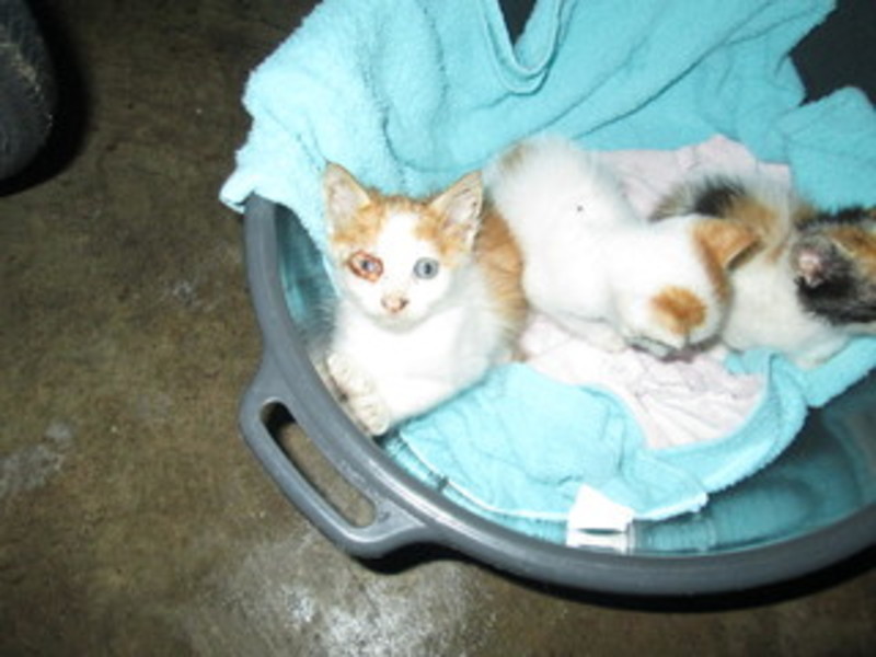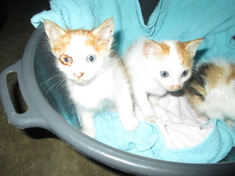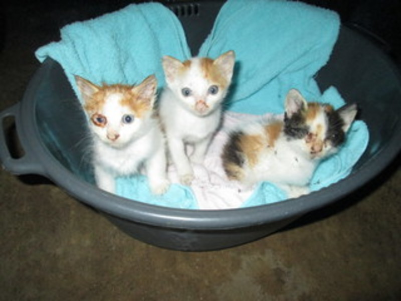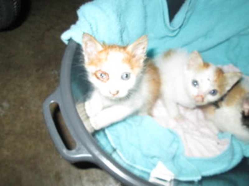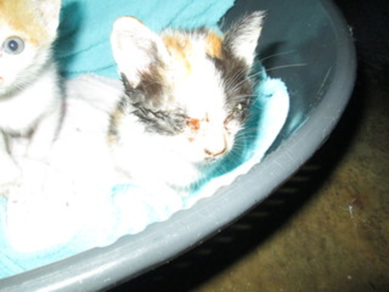 | 特徴(性格など) | 緊急!大牟田市(スーパートライアル側)近所の野良猫が出産し、現在あかちゃん猫(生後1か月半?前後)3匹がいます。夜になると母猫がどこかへ連れていき場所がわかりません。3匹のうち2匹の子が目を結膜炎(写真参照)を起こしており、急がないと最悪のケースも考えられます。病院に確認したら治るみたいです。里親がいなければ病院にも連れていけません。私の自宅が動物禁止(かなり厳しいルール)であり、親猫から一度離すと育児放棄になり、二度とこの子たちは生きていけませ。緊急!ですが、このあかちゃん猫を引き取って下さる方を募集しております。病院代金とか餌代とか親身になりご相談にのれますので、どなたか拾っていただける慈愛に溢れた方いらっしゃいますでしょうか?心よりご返事お待ちしております。移動などその他お手伝いできることあればなんでもいたします。ご連絡お待ちしております。 | ||