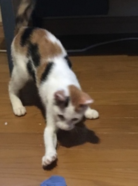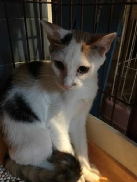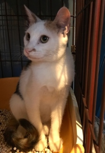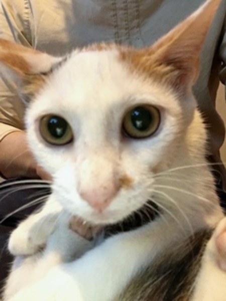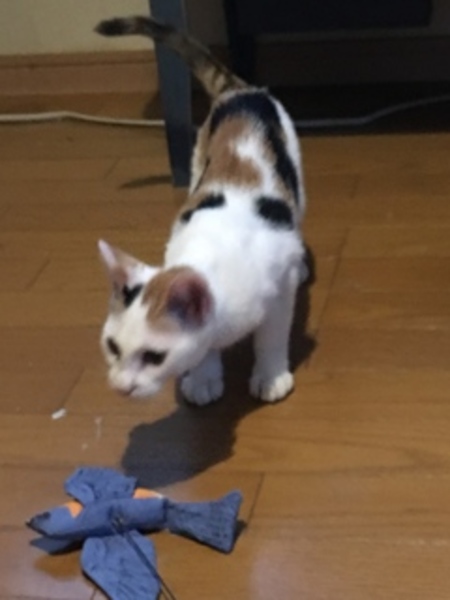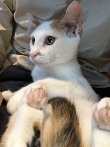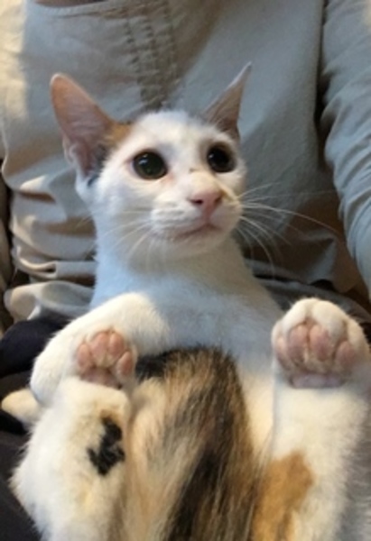 | 特徴(性格など) | 名前はコマちゃんです。(仮名) 白が多めのミケ猫ちゃん、右の脇腹にハート柄(無理矢理では、ないです(^^ゞ)がありキュートな色合いになっています。 まだ警戒心がありますが、撫でたり抱っこしたり遊んだり、と出来ます。大人しい性格だと思います。 健康体です! レボリューション・ワクチン1回目が済んでいます。 ご飯はカリカリをモリモリ食べます. |