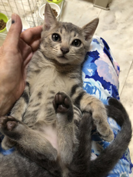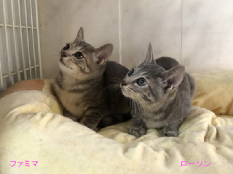 | 特徴(性格など) | 仮名:ローソンちゃん ファミマちゃん 性別:女の子 年齢:生後2ヶ月半 特徴:まっすぐ尻尾。グレー色。 その他:耳ダニ検査済。便検査済。1回目ワクチン接種済。ウイルス検査結果は陰性。 兄妹の男の子はご縁を頂きました。 |