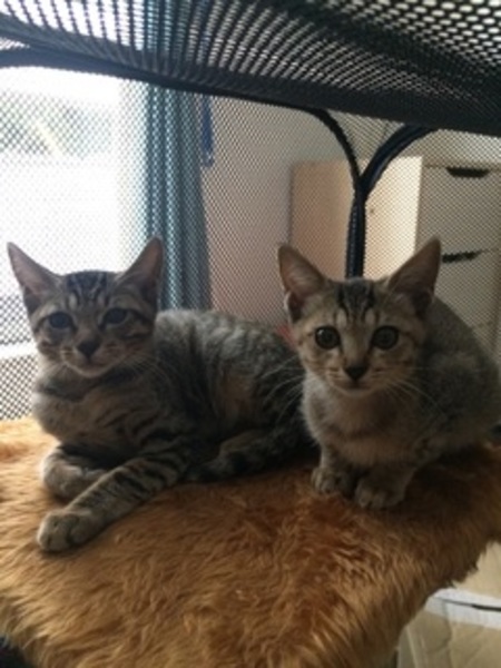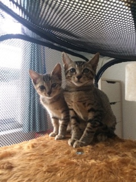 | 特徴(性格など) | キジトラの兄妹です。 お兄ちゃんは慎重でおとなしい性格。かなりのイケメンです。 妹は小柄でお転婆。紐で遊ぶと喜びます。この子もかなりの美ニャンです。 |