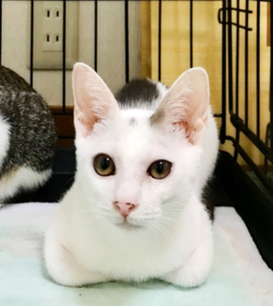 | 特徴(性格など) | 白地にグレーの模様が入った男の子です。 やんちゃで愛嬌のある動きをします。 これまで一度も、うっかりでも爪を立てたことや噛み付いたことのない賢い子です。 また、掃除機の音や見た目にも怖がらず、平然としてます。 レボリューション済み(ノミ、ダニ、回虫駆除済み) 3種ワクチン接種2回目済み(全3回) 血液検査エイズ・白血病ともに陰性 食欲旺盛で、よく遊びます。 |