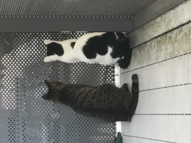 | 特徴(性格など) | 仮名「福(ふく)」(キジトラ♂)と「幸(こう)」(白黒♀)のきょうだい猫です。 2匹ともやや臆病で人見知りをします。福ちゃんは、やや活発で好奇心も旺盛です。幸ちゃんは非常に警戒心が強く、いわゆる「ツンデレ」の女の子です。 |
