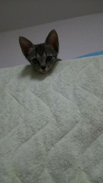 | 里親募集する理由 | 真夏の暑い日、コンビニ横の草むらからみゃーみゃーと叫ぶような声が聞こえ、あわてて保護しました。母猫が帰ってこなかったのか、誰かに捨てられたのか、ガリガリにやせていてもう少し遅かったら命はなかったかもしれませんでしたが、たくさん食べて元気に育ってくれました。 うちには他に気難しい猫、腎不全で毎日病院通いの必要な猫がおり、この子達を十分に構ってやることができず里親様募集をさせていただいております。 |