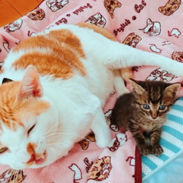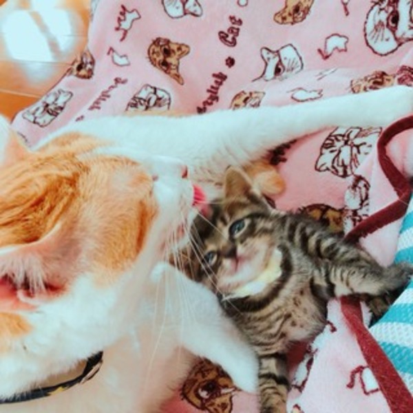 | 特徴(性格など) | 生後3週間の男の子で、ミルクも沢山飲んで元気な子です。成猫にくっついて寝ています。 | ||