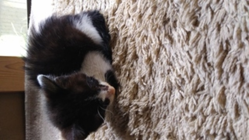 | 特徴(性格など) | 白と黒色のメス猫で、とても人懐っこく、利口な子猫です。ニャアニャアとよく鳴いていて、とても元気です。可愛い子猫ちゃんです。eveと名付けています。 | ||
