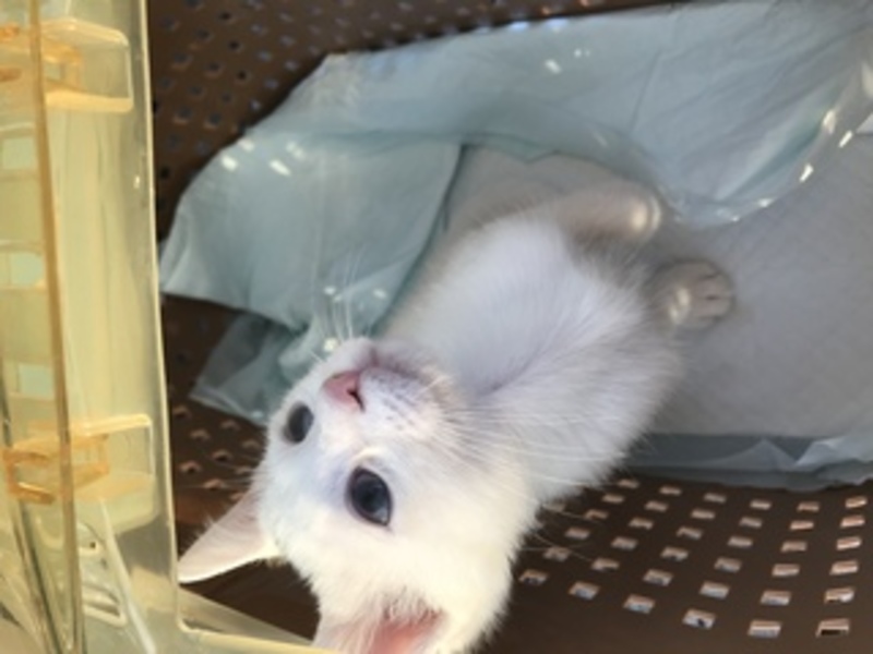| 特徴(性格など) | 白猫で頭の天辺だけに 模様ありなやんちゃな女の子です。 |