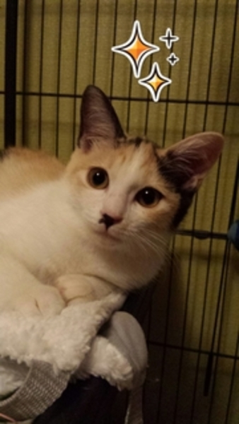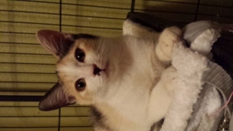 | 特徴(性格など) | パステル三毛猫です。やさしい色合いです。 ぴーよーと泣くので、ぴよちゃんです(仮名) |