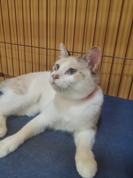 | 特徴(性格など) | シャムミックスの女の子、目はブル— 一才位かと思われます。 性格はおっとり穏やか、人見知りも全くしません。 ベタなれです。 |