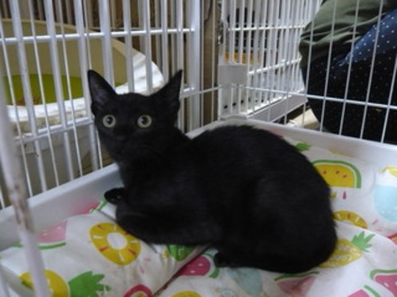 | 特徴(性格など) | 名前は、アイちゃんといいます。毛色は黒で、目と耳は大きいです。とても大人しく、人と猫に慣れています。私の背中に乗って遊びます。 | ||
