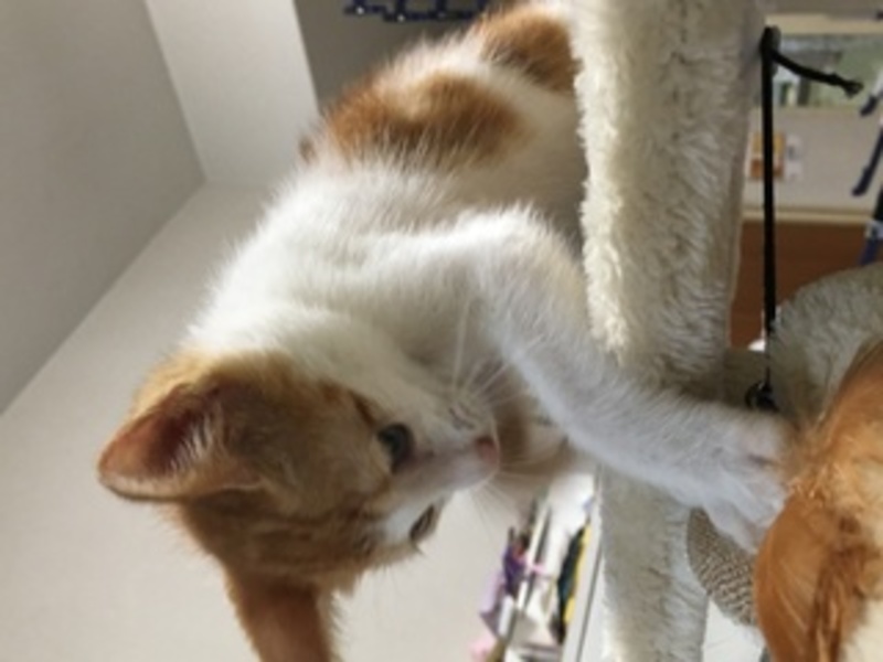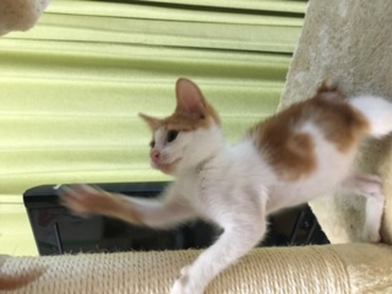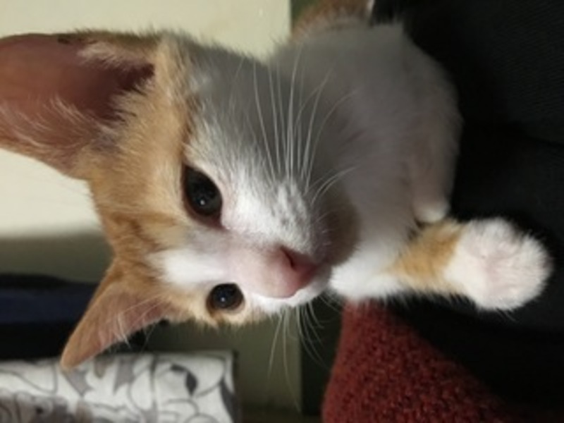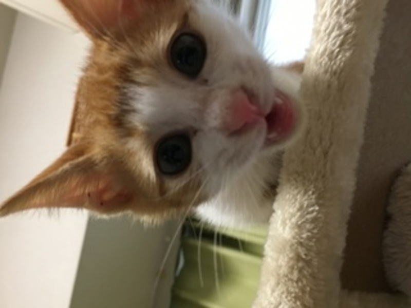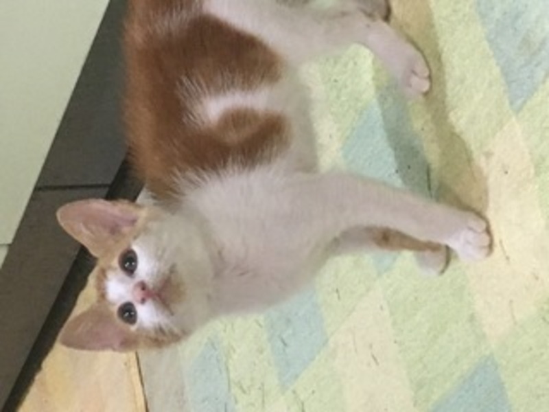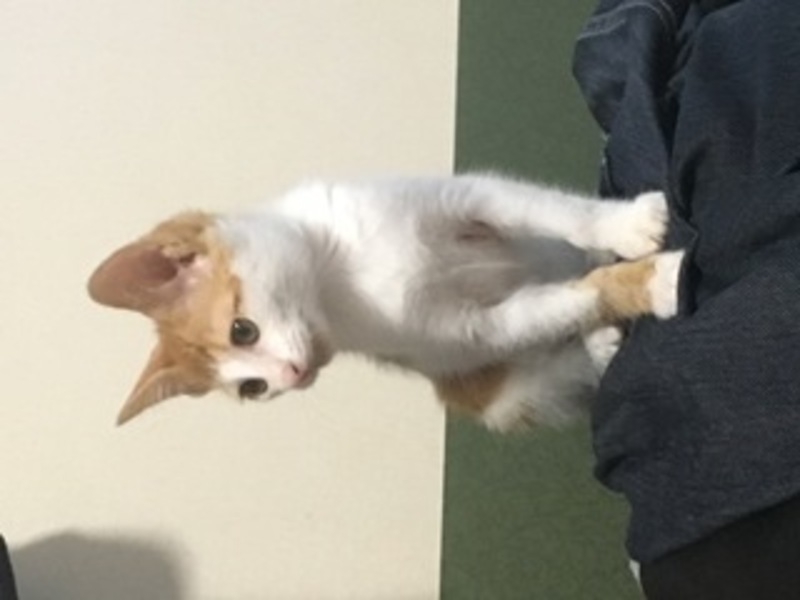 | 特徴(性格など) | 仮にちぃちゃんと呼んでいます。毛色はキジシロ、とてもやんちゃで活発な女の子です。かぎしっぽ。人見知りはせず、誰でもすぐ抱いたりできる子です。 | ||