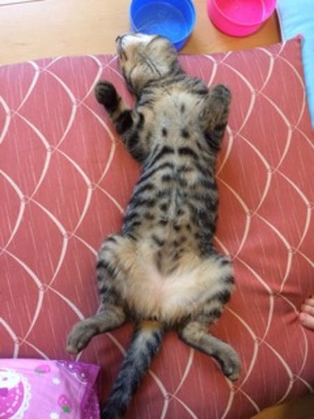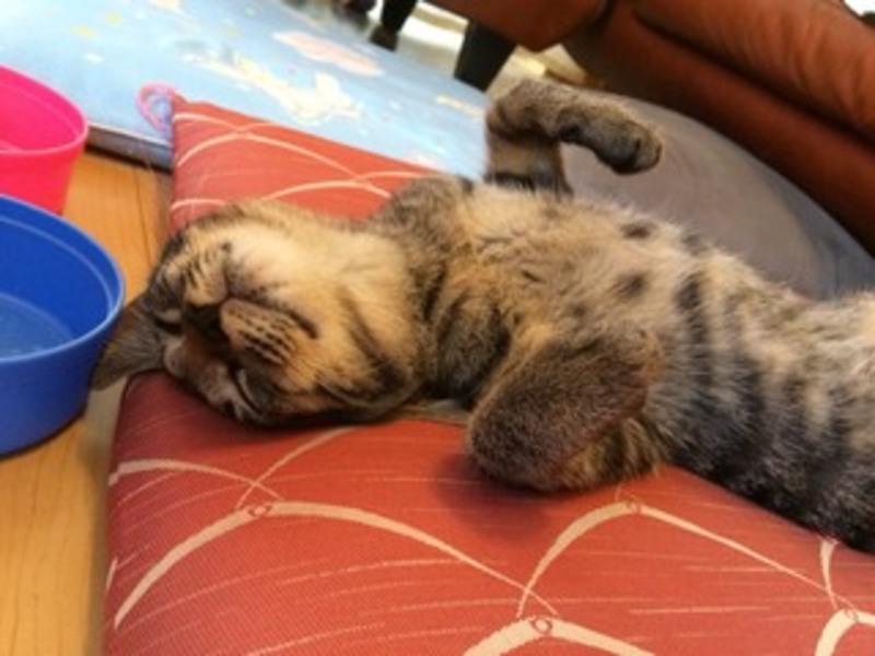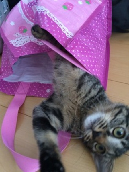 | 特徴(性格など) | 可愛いキジトラちゃんです。 生後6ヶ月、未避妊です。 性格はとってもびびりちゃんだと思っていましたが、意外と図太いです。(笑) 最初だけシャーシャー威嚇してしまいます。 なので少し慣らしてから、ゆっくりと付き合っていただけたらと思いますが、他の先住猫ちゃんがいたので、私の家に遊びに来た時は、威嚇してしまったのかもしれません。 じゃれて甘噛みする程度で攻撃はしてきません むしろ抱っこされたらされっぱなし、逃げずに寝ています。 甘えん坊さんでお腹の上に乗せるとゴロゴロしながらすりすりしてきます。 |