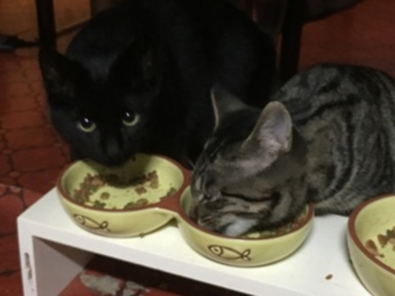 | 特徴(性格など) | 黒猫1匹とキジ猫2匹です。すべて女の子です。キジの子2匹は少しカギ尻尾になってます。キジの子は写真では見た目あまり区別できませんが、少し身体の大きめの子は人懐っこいです。小さめの子は一番臆病ですがご飯をあげている内に触らせてくれるようになりました。黒の子は美人さんで抱っこまでは懐いてませんが触らせてくれます。 野良出身で慣れるまで時間がかかると思いますが、理解ある方是非お願いします。 |