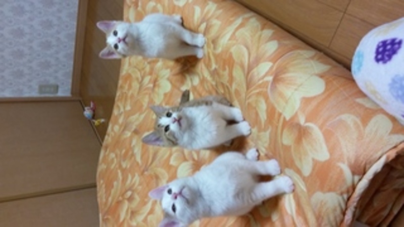 | 特徴(性格など) | まだ少しビビり君ですが、抱っこして顔回りを撫でてあげると大人しくしています。 兄弟猫のダイとモッチとのニャンプロが大好きで、疲れるといきなり電池切れとなり、コトッと眠ってしまいます♥ | ||