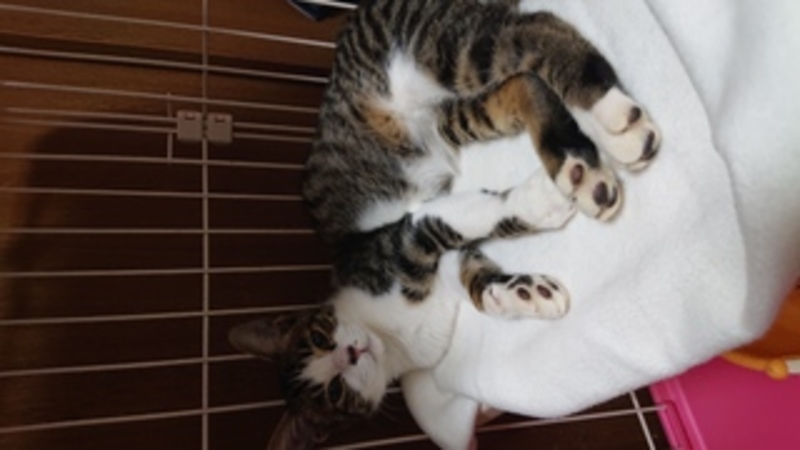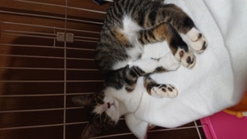 | 特徴(性格など) | 仮名…カンナちゃん キジ白の顔の小さい美形のにゃんこです。とっても人慣っこいです。 |