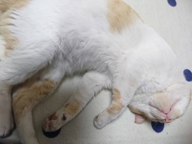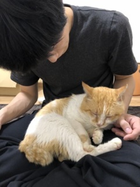 | 特徴(性格など) | 白で茶ブチのとても愛嬌のある顔をしています。性格はとても良い子で人間大好きの甘えん坊です。頭を撫でられるのが大好きで、もともと飼い猫だったのかもしれません。 | ||