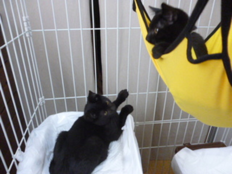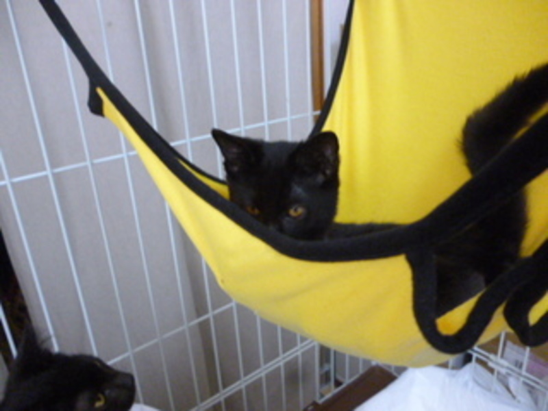 | 特徴(性格など) | ◇仮名◇らいおん ◇毛色◇クロ ◇性別◇オス ◇健康状態・性格◇ 健康状態良好。 ウイルス検査:エイズ(-)・白血病(-) 11/末に駆虫の最終便検査、2回目ワクチン予定。ノミ・ダニ駆除済。 1.1kg しっぽ長い 保護時より威嚇は一度もありませんので、穏やかな優しい顔をしています。 撫でるとゴロゴロ言って、へそ天になり、「お腹も撫でて〜」と催促します(笑) また、撫でているとこちらに来て、「抱っこして〜」とやってきます。 保護より2週間経ち、少しふっくらして、益々可愛いお顔になっています。 写真は、ニャンモックに乗っているのが「らいおん」で、一緒に遊んでいるのが、兄弟妹の「ひよこ」♂です。 3兄弟妹で保護したので、3猫でのご縁があれば一番嬉しいのですが、ハードルが高いと思いますので、 一番ビビりの「うさぎ」♀と一緒のご縁があれば嬉しいです。 |