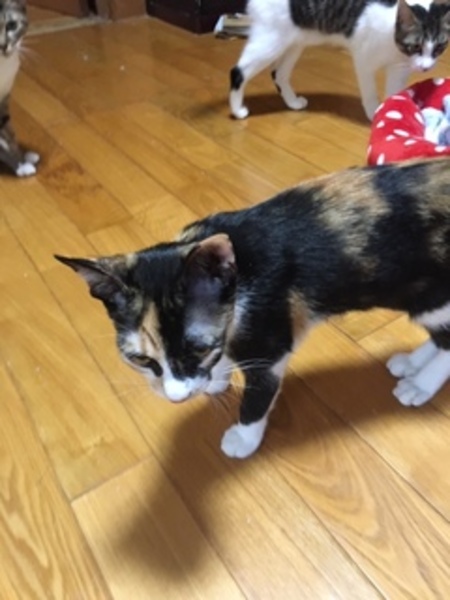 | 特徴(性格など) | 人口哺乳で育てましたのでとても人懐っこい子猫達です。 先住ねこたちともとても仲良しで、成猫さんにも人にもよく甘えています。 健康状態良好。 トイレの失敗もありません。 ノミ・ダニ駆除済 ウイルスチェック済み(エイズ及び白血病共にマイナス) ワクチン済み 不妊及び去勢手術済み |