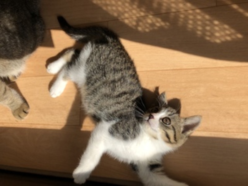 | 特徴(性格など) | 名前 モモ サバシロの甘えん坊な子猫です。 母猫が恋しいようでうちの猫(オス)の鎖骨辺りに吸い付きながら寝てたりしています。 |