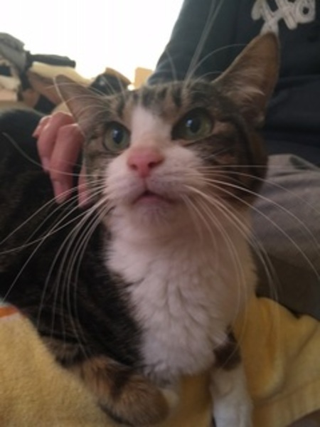 | 特徴(性格など) | 【推定生年月日】2009年頃 【毛色】白キジトラ 【しっぽ】長くてまっすぐ 【性格】 穏やかで抱っこが大好き! 前環境では一人っ子だったため他のねこさんとの交流は下手ですが、 攻撃性はありません。 日中はお昼寝時間が長く、ケージ内にも良く慣れています。 歯はあまり残っていませんがドライフードを上手に食べています。 ☆不妊去勢手術済 ☆ワクチン済 ☆ノミダニ取り済 ☆駆虫済 ☆マイクロチップ挿入済 ☆ウイルス検査 エイズ(ー)・白血病(−) |