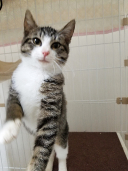 | 特徴(性格など) | 白キジちゃんですグレーのキジとまっしろな胸毛が可愛いです 足先も白です。とても人なつっこく撫でてもらうとゴロゴロいいます もっと撫でてもらいに頭をすりすりしてきます 名前はげんちゃん(仮名)です 健康状態:良好 血液検査:陰性 5種ワクチン:1回目接種済み ノミダニ駆虫済み |
