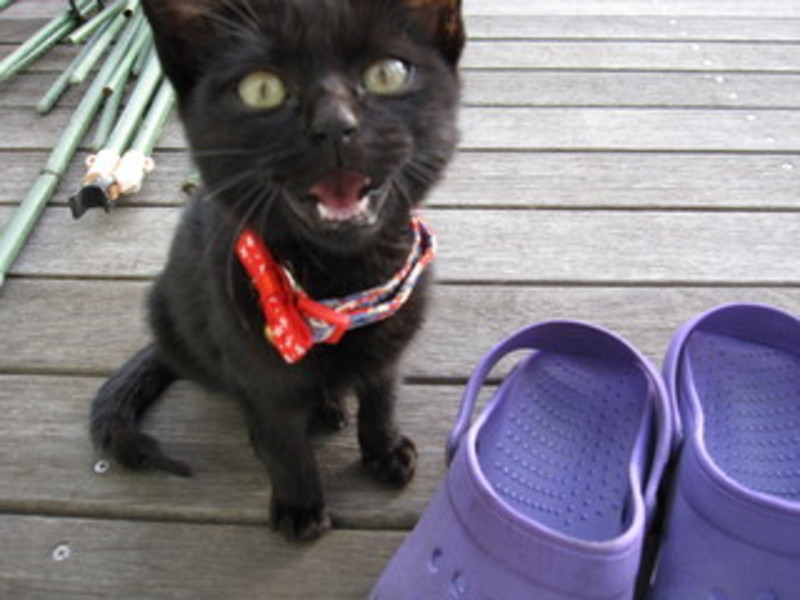 | 特徴(性格など) | 美しい真黒なネコです。 とても人懐っこく、抱っこされるのが好きで人間大好きな性格です。 雄と雌の双子です。少しやんちゃで抜群の可愛らしさです。 |