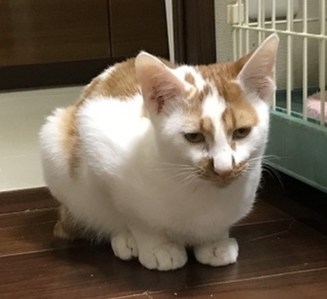 | 特徴(性格など) | 推定生年月日:2018年6月頃 毛色:茶白 しっぽ:ぽきぽきぐるぐる個性的 しょぼくれ(´・ω・`)顔が可愛いしょぼぼ。 いたずらもしますが、遊び盛り、元気いっぱいの証! 添い寝とお布団大好きのしょぼぼ、寒くなるこれからの季節、身も心もあったかです♪ 同時募集のオーレと一緒に生活していますので、仲良しペアでのお迎えも是非! 保護当初は風邪をひいていましたが、現在は回復しています。 ☆不妊去勢手術済 ☆ワクチン2回済 ☆ノミダニ取り済 ☆駆虫済 ☆マイクロチップ挿入済 ☆トイレしつけ済 ☆ウイルス検査 エイズ 陰性、白血病 陰性 |