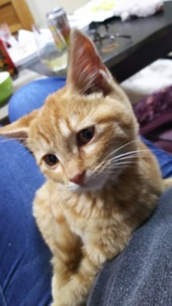 | 特徴(性格など) | 仮名エモン君です。 茶とらの男の子です。 レボルーション済み、エイズ、白血病共にマイナス。 血液検査も異常なしでした。 抱っこ大好きな可愛い仔猫です。 |