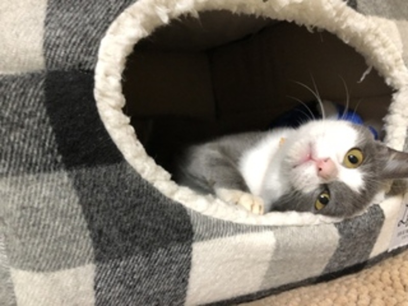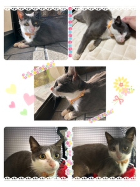 | 特徴(性格など) | 綺麗な白とグレーのハチワレっ子ちゃんです。 保護して慣れるのに数日。慣れたらスリスリゴロりん娘になりました。 多分ツンデレな猫らしい感じの娘だと思います。 ゴリニャンっぷりはかなり激しめ。 時々甘噛み&猫パンチあり。 上半身を撫でられるのは嬉しいけど、下半身触ると時々パンチか甘噛みが・・・ 初めはガッツリ噛まれて、引っ掻かれました。 |