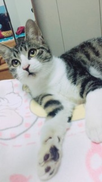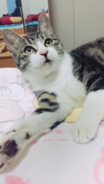 | 特徴(性格など) | 尻尾は長くきじ白の大人しい子です。抱っこされているのが一番安心なようです。食欲旺盛・健康です。ワクチン・エイズ・白血検査陰性・去勢済 僕に会いに来てね!! |