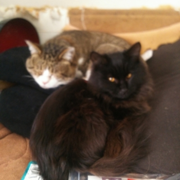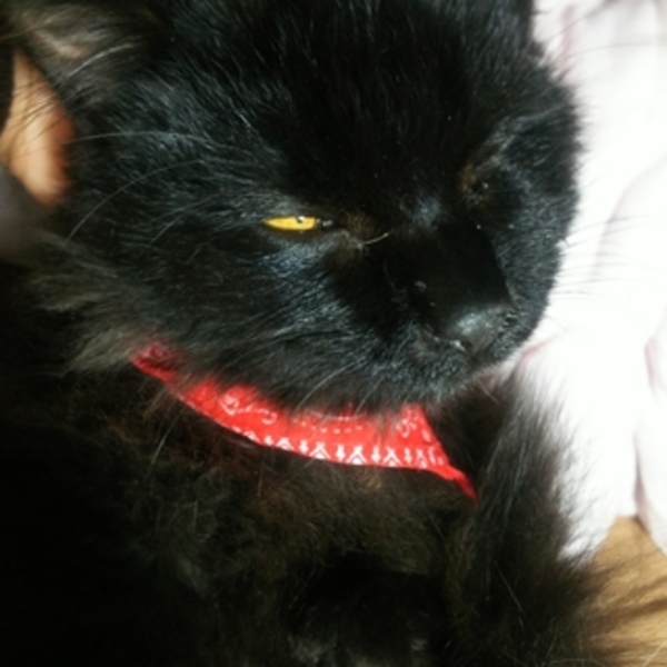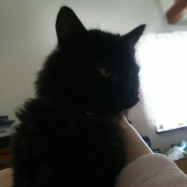 | 特徴(性格など) | 黒猫ロングヘアの男の子です。ロングヘアなのでロンちゃんと呼んでいます。性格は好奇心旺盛で、やさしい甘えん坊さんです。 抱っこが好きで、抱っこすると抱っこしかえしてくれます。 食欲旺盛でよく食べますがよく動くので、太っていません。 ホントに優しい子です。 |