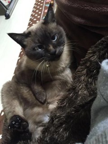 | 特徴(性格など) | シャム系の模様の雑種です。人懐っこい性格ではありませんが、気が向いたら近づいてきてヒザに乗ってきたり、すり寄ってきたり気ままな性格です。耳を触ると喜びます。大きな病気はしたことがなく、とても元気です。 | ||