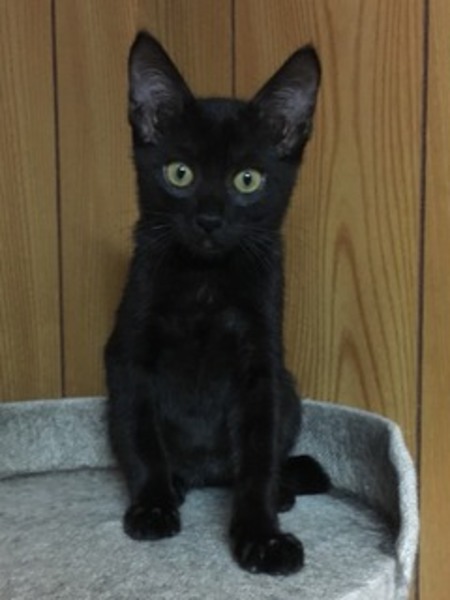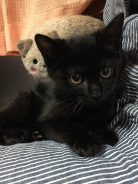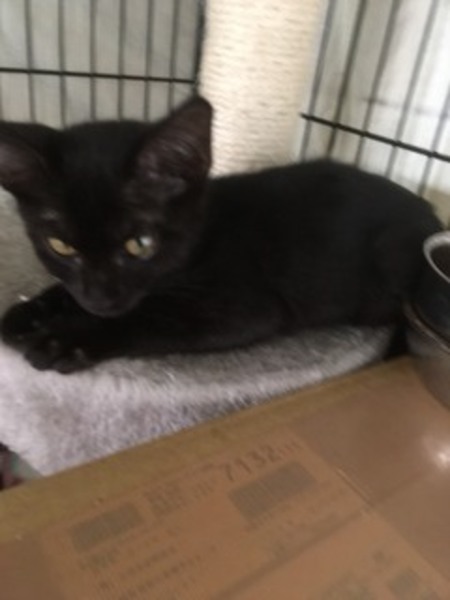 | 特徴(性格など) | 黒猫のメス。性格の穏やかなおとなしい子です。トイレしつけ済み。食欲旺盛、元気です。 | ||