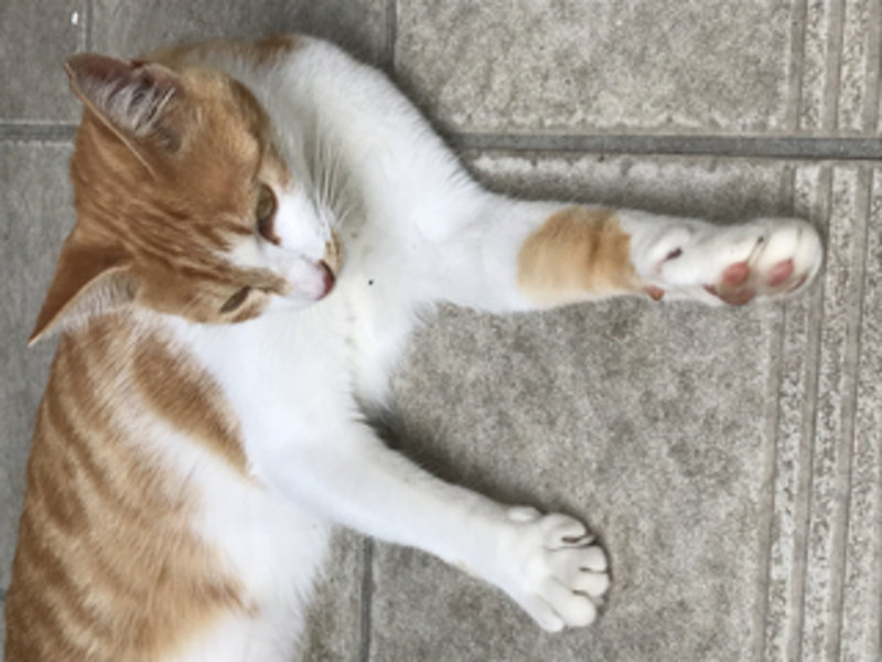 | 特徴(性格など) | 茶トラ白の猫です。とても甘えん坊、ちょっとインドア派で寒がりです。弟妹たちとも仲がよく、たびたびお世話をしています。 | ||