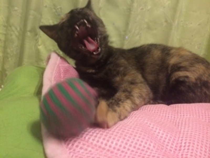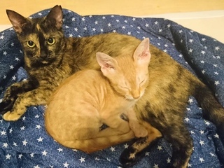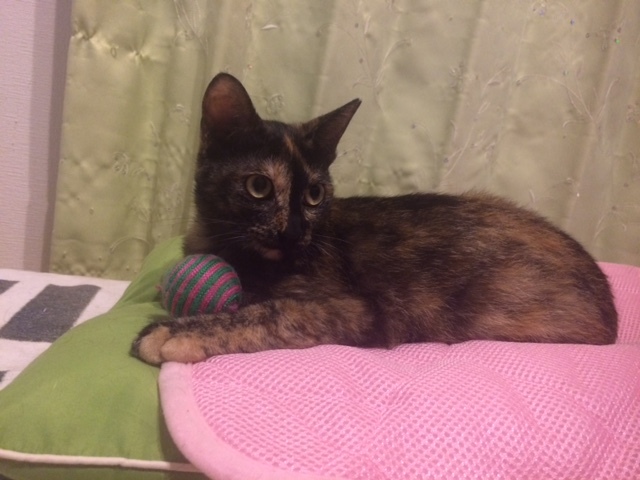 | 特徴(性格など) | 【仮名】むぎちゃん 【性格】ボールを投げると追っかる、ドリブル上手な子です♪スノーボールをぴょんぴょん追っかけて、くわえて持ってきてくれます。他の猫達とも仲良く、仔猫の面倒見もいい子です★お世話をしている人間家族の後をついて周り、お風呂の外で待っていてくれたりします★ケージに居た時は、撫でるとゴロゴロ言ってくれたのですが、フリーになってからは、触ろうとするとピューと逃げちゃいます(涙)ですが、自分から前脚でチョイチョイ叩いてくれる、可愛い子です★近頃は、なでなでもさせてくれるようになりました☆環境が変わると、隠れてしまう可能性があるので、むぎのペースで人馴れを待って下さる里親様を希望します。みかんくんと仲良しです★ |