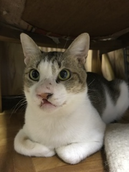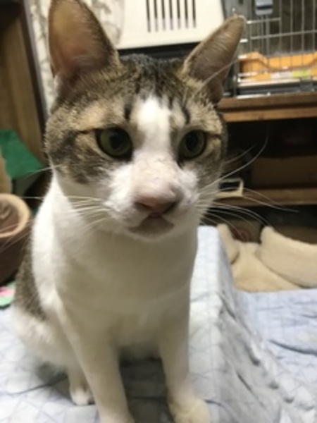 | 里親募集する理由 | 庭に来た時から、鼻が腫れており、2ヶ月くらい経った頃、目の形が変わるくらいまで腫れがひどくなり、膿みか涙か汁が垂れていた為、保護しました。 病院で、血膿を出してもらい腫れも引いてきましたが、それ以上は引かず、 骨や細胞、粘膜を採取しての検査をし、異常がなかった為、募集することにしました。 |
