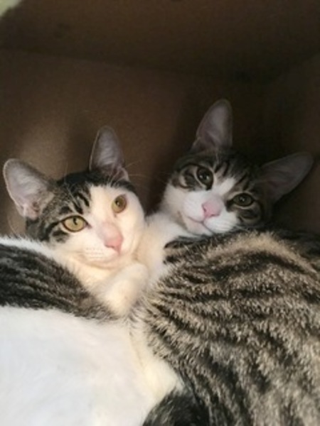 | 特徴(性格など) | ゴミをあさって怒られていたので、最初は逃げたりするような態度を取る時もありますが、白サバくんは人なつこく、マイペースでヤンチャで、ご飯も先に食べようとしますし、茶サバくんを触っていたら僕をと割り込みます。 茶サバくんはまだ人に恐怖心がありますが、そのわりに物などには興味心があります。 撫でるとゴロゴロ言いますし、遊び出したら夢中です。 控えめですが優しいコです。 2匹共、遊び好きです。 無駄泣きや噛んだり、引っ掻いたりはしません。 とても優しい子達です(*^^*) ⚫2回ワクチン接種済み ⚫白血病・AIDS感染なし |