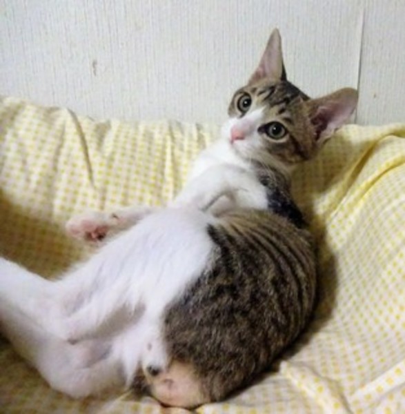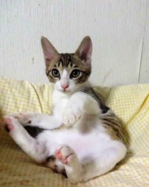 | 特徴(性格など) | 4匹兄弟です。 プロレス大好きですが、いつも下になり、ギャアギャアわめいていますが、やめません。 威嚇なく、人が好き。 抱っこも好きですが、今は遊びが大好きなので、じっとしていられない時で、走りまくっています。 兄弟一緒のお家が希望ですが、1匹でも相談可です。 のみ取り済 検便済 駆虫済 3種混合ワクチン済 猫エイズ・白血病ウィルスはともに陰性 一部医療費(13160円)のご負担をお願いいたします。 |