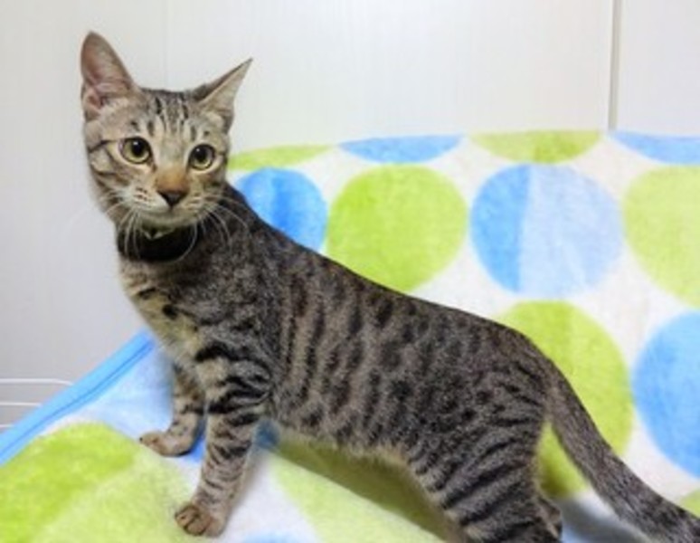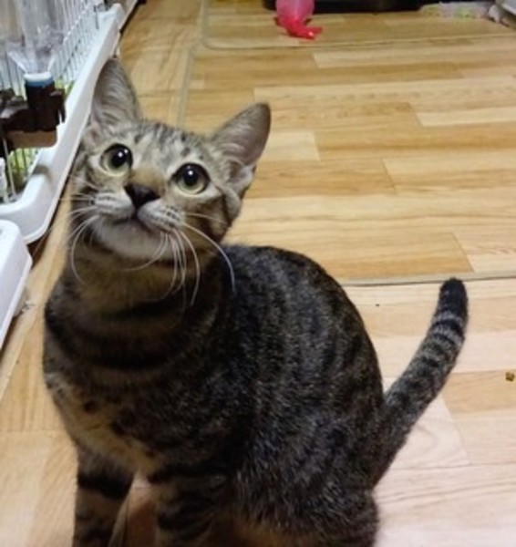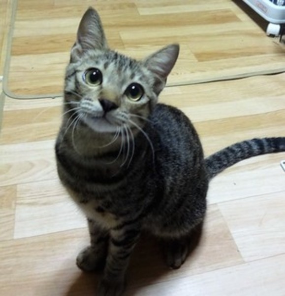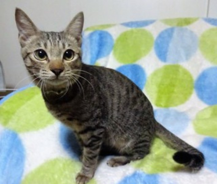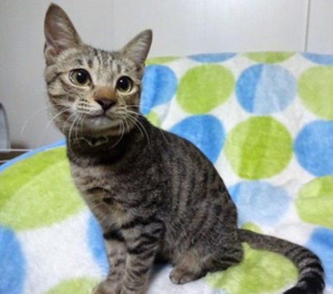 | 特徴(性格など) | キジトラの男の子。 人が好きで、姿が見えると呼んだりします。 人は大丈夫ですが、猫には好き嫌いがあるようで、気の合わない子もいます。大体は、上手に付き合っています。 大きくなっても抱っこが好きな子です。 のみ取り済 検便済 駆虫済 3種混合ワクチン済 去勢手術済 猫エイズ・白血病ウィルスはともに陰性 一部医療費(27940円)のご負担をお願い致します。 |