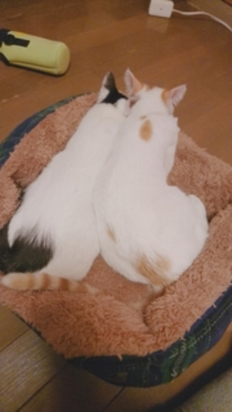 | 特徴(性格など) | 白×黒はメス(名前はミルクと呼んでおりました)で、きなこより一回り小さいです。 白×茶はオス(名前はきなこと呼んでおりました) 仲良し兄弟で、一緒に遊んで、一緒のご飯を食べて、一緒に寝ます。 とても元気がよいですが、まだ大きな音は怖がり、カーテンの後ろに隠れてしまいます。 |
