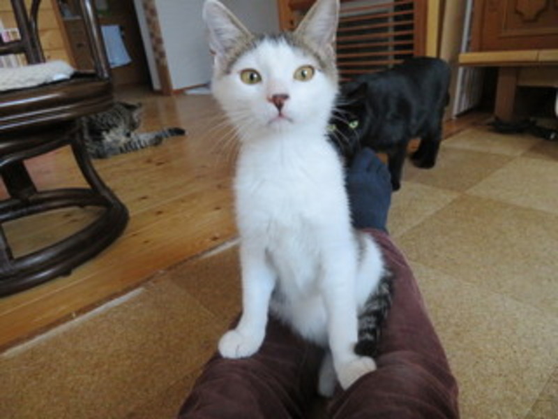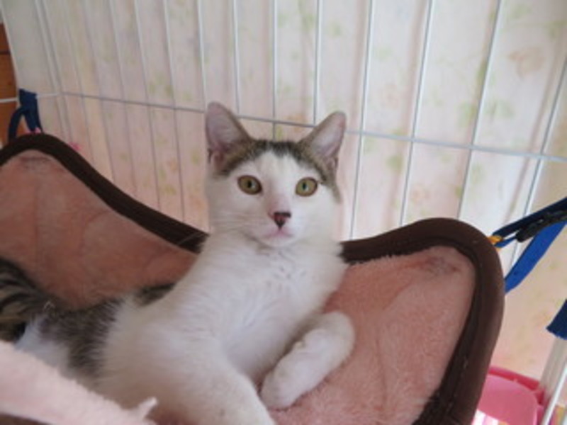 | 特徴(性格など) | キジ白の男の子吉田やっくんです。ケージから出す時「やっく〜ん、かーわいーねー」と言いながら抱っこしちゃうとゴロゴロ言います。でもフリーの時は呼んでも来ません。そんな時には「ご飯だよ〜」と誘うと、いとも簡単に抱っこができちゃいます。おもちゃにも大変よく反応してくれる楽しい子です。 | ||