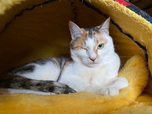 | 特徴(性格など) | ☆☆☆ご希望の方は、以下のアンケートフォームにご記入の上、送信してください☆☆☆ ねこ親希望アンケート→ http://chibawan.net/contactform_cat 【猫No】2569 【愛称】かんぴょう 【性別】メス 【年齢】推定3才10ヶ月(17/08頃生) 【毛色】三毛 【体重】3.5㎏ 【状態】不妊手術済、ワクチン接種済(21/01/26)、マイクロチップ装着済、血液検査済(エイズ−・白血病−)、検便・駆虫済、トイレ躾済 【預かり場所】神奈川県川崎市 【日記】renhana7(インスタグラム) https://www.instagram.com/renhana7 【経緯】千葉県動物愛護センターより引き取り 【性格】控えめに甘える女の子です。抱っこは苦手ですが、隣に寄り添ったり、時にはお腹を見せて撫でさせてくれたりします。猫らしいマイペースなところがあります。 子猫の時の猫風邪の影響で右目の眼球が委縮しています。当猫はいたって気にせず、特別なケアも必要なく、生活にも支障はありません。 仲良し兄妹の『ひょうたん』と一緒に迎えてくださるご家庭を希望します。 【その他】愛情いっぱいの終生飼養、猫に合った生活スタイル、完全室内飼育、細心の脱走防止対策、定期的なワクチン接種などの健康管理、定期的な近況報告をお約束いただける神奈川県近郊のご家族で、アンケートに快くお答えいただける方からのお問い合わせをお待ちしております。 |