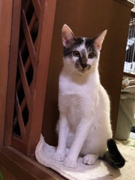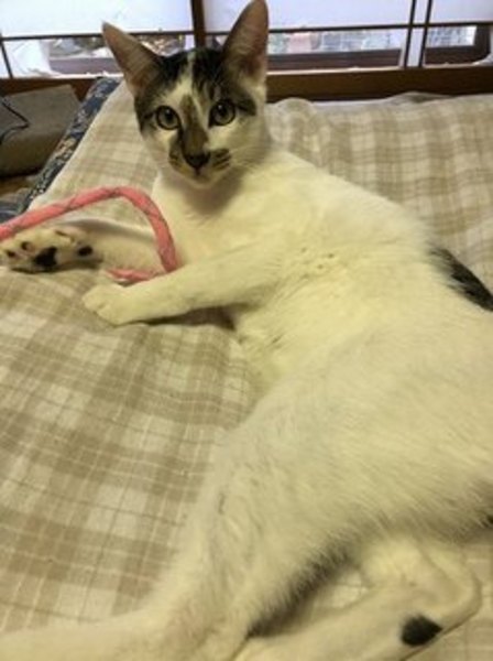 | 特徴(性格など) | 名前は あめちゃんです。 白の多いサバシロのイケメンくんです。ちょっと恥ずかしがりですが 遊ぶの大好きなので、オモチャを見せると遊んでほしいと近寄ってきます。 とても元気で、お行儀も良くトイレも完璧です。 去勢手術済、ワクチン、駆虫、血液検査済、エイズ白血病とも陰性です。 |