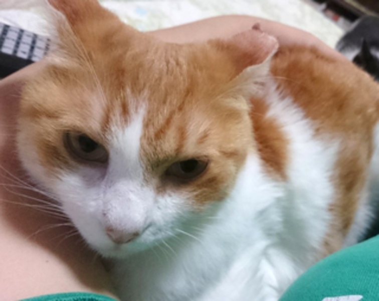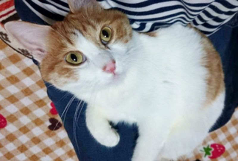 | 特徴(性格など) | お膝に乗ったりして甘える、かわいい茶白猫です。 不妊手術済みの印に、片耳がカットされています。ワクチン済み。 仮名は「八重子」ちゃんです。 |