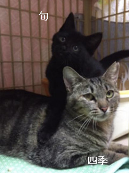 | 特徴(性格など) | 仮称を『四季』と言います。 TNR現場より保護されました。 きじとらにアメショミックスのような模様のあるお召し物。 母性愛溢れるおんなのこ。とても愛らしい仔です。 人馴れも十分。仔猫の面倒見もいい仔です。 別番で募集中の『旬』の実の母ではないのかもしれませんが、『旬』の面倒をとても良くみています。 出来たら『旬』と一緒にこの先も暮らせたらいいね!と思う程の関係です。 四季は四季の幸せの道を歩んでほしいとも思って居りますので、『旬』と二頭は難しいという方でも、 四季にお心を留めていただけましたなら、ぜひ是非!愛らしい四季に会いにいらしてください♪ 【医療処置情報】 これから実施のも含まれます *健康チェック *3種混合ワクチン接種 *ウイルス検査(FIV. FeLV共に陰性) *検便 *駆虫薬投与(レボリューション、ドロンタール) *マイクロチップ装着 *不妊・去勢手術 |