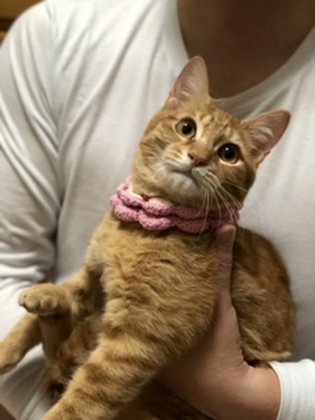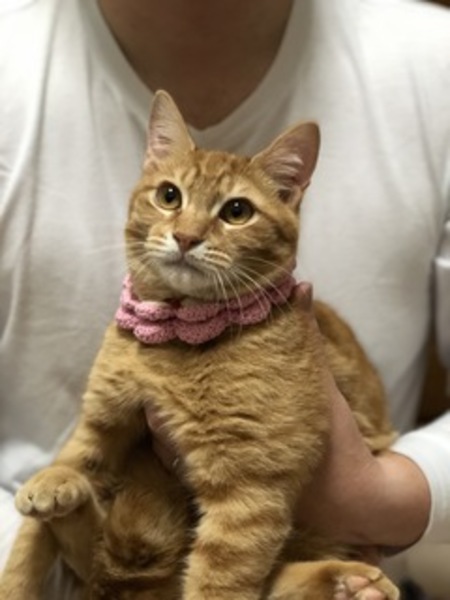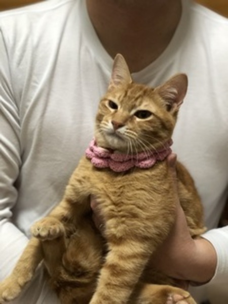 | 特徴(性格など) | 小柄な茶とら君 抱っこするとゴロゴロしだす甘えん坊です。 毛はフワフワして尻尾はやや短めです。 ノミダニ駆除・虫下しスミ 血液検査にて猫白血病 猫エイズ陰性です。 近々去勢手術とワクチンを打つ予定にしてます。 |
